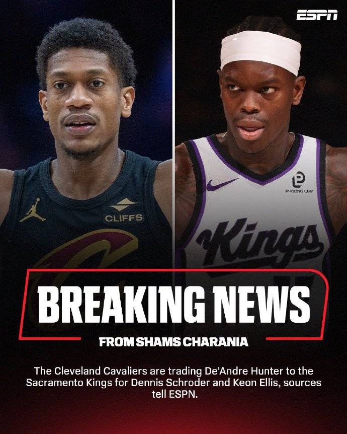 曝施罗德被交易至骑士+亨特赴国王 公牛得到沙里奇 admin 2026年02月01日 13:30 24 0 北京时间2月1日消息,据知名记者Shams报道,骑士队与国王队完成交易,亨特被骑士队送到了国王队,换来施罗德和埃利斯。据ESPN报道称,这笔交易还涉及公牛队,他们将得到国王队前锋沙里奇和两个未来次轮选秀权。 标签: #Shams #施罗德 #前锋 #国王 #公牛 #交易 #亨特 #骑士 #埃利斯 #沙里奇 #曝施罗德 #国王队 #骑士队